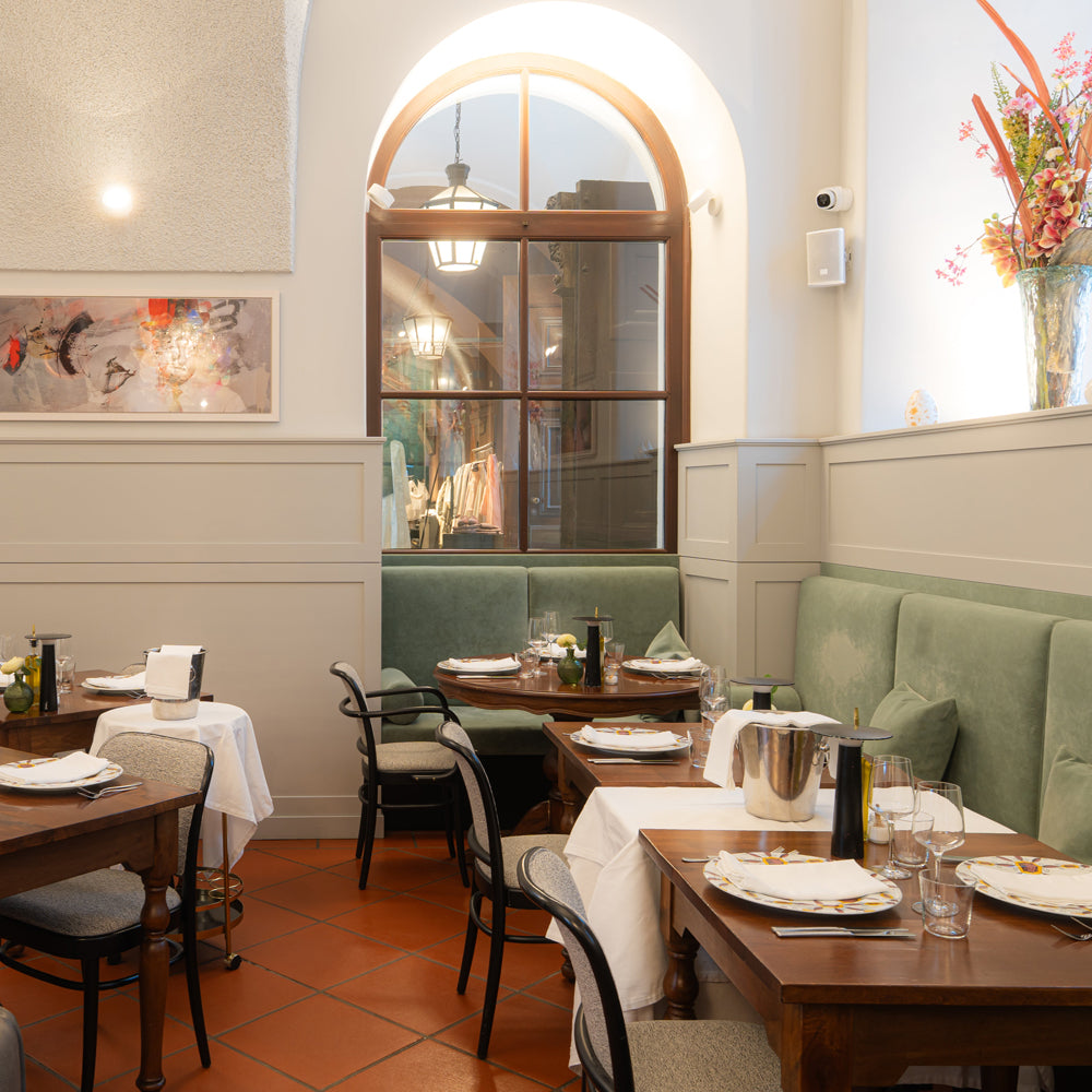 Die Trattoria Martinelli vereint traditionellen Glanz mit modernen Einflüssen, die gemeinsam die historische Bedeutung jenes Palastes widerspiegeln, in dem einst sogar Mozart konzertierte.